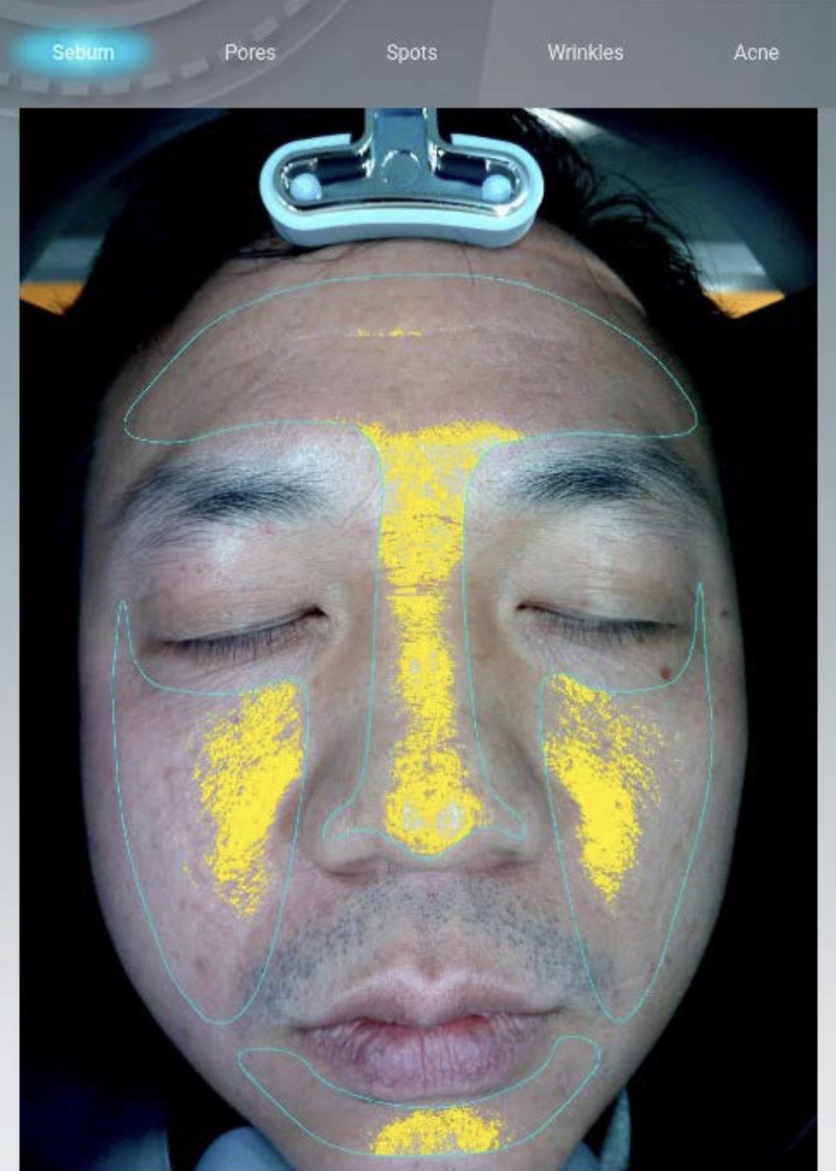 The distribution of excess sebum can be clearly observed when in ‘Sunlight’ mode.